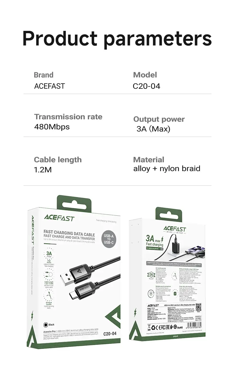 ACEFAST C20-04 USB-A to USB-C Aluminum Alloy Charging Cable