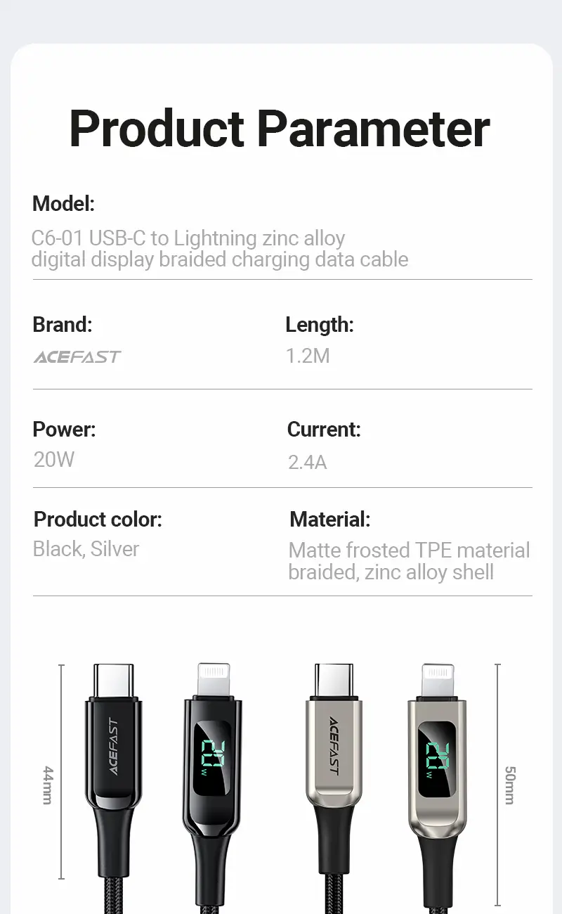 ACEFAST C6-01 20W USB-C to Lightning Charging Cable - 2M - Black