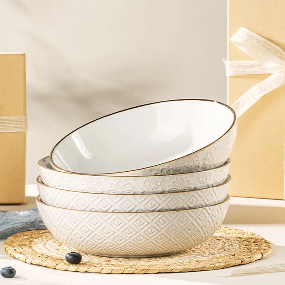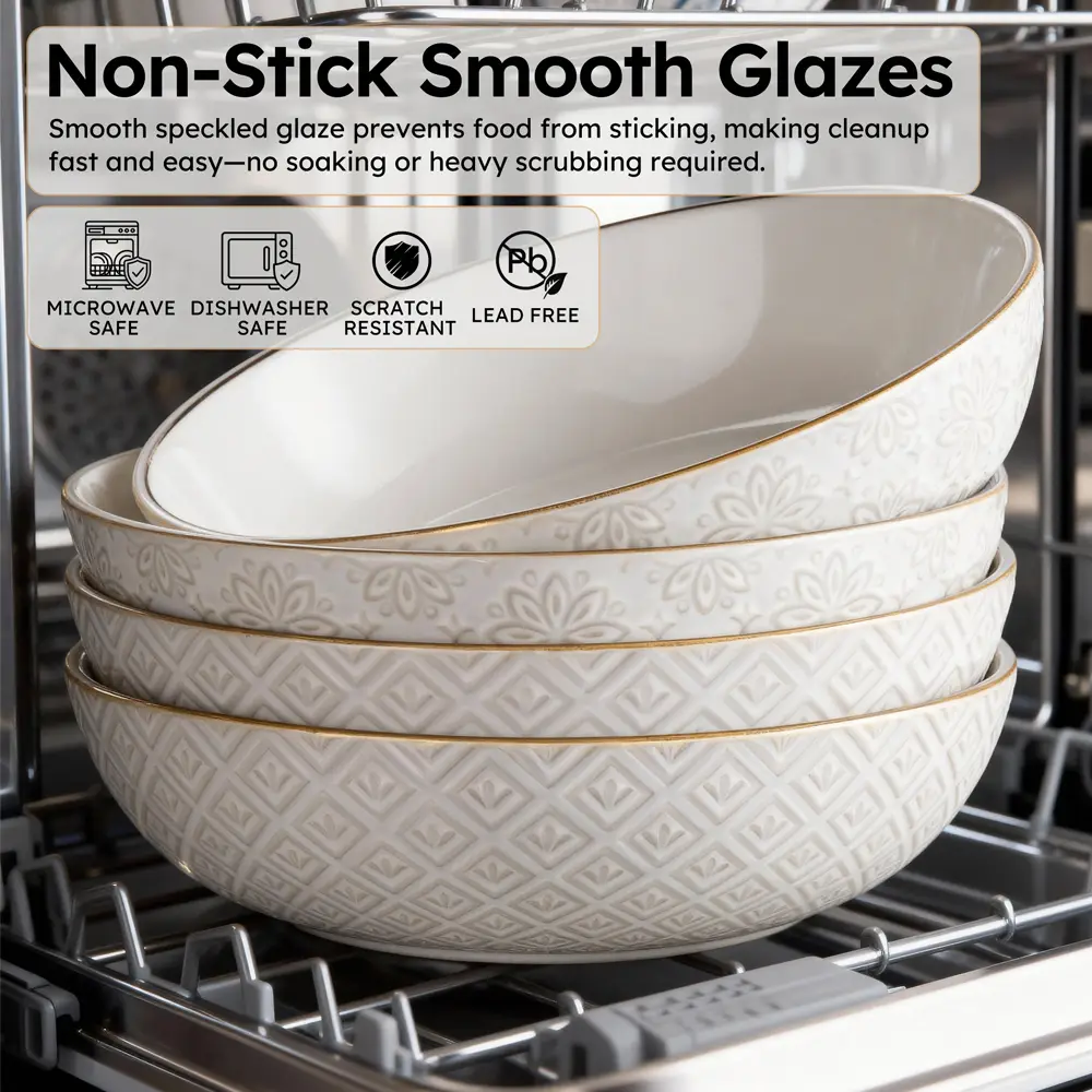 Crafted from premium, food-safe ceramic clay and finished with a hand-made glazed surface fired at high temperatures, these bowls offer a scratch-resistant, durable, and refined finish that complies with stringent health standards.