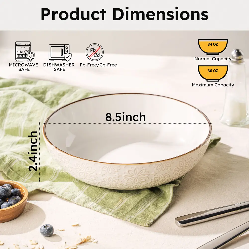 Versatile Serving Utility: The wide, deep capacity is perfect for serving pasta, salads, cereals, main courses, soups, seafood, casseroles, and fruit, suitable for home, cafeteria, or restaurant use.