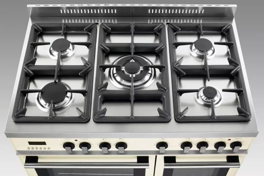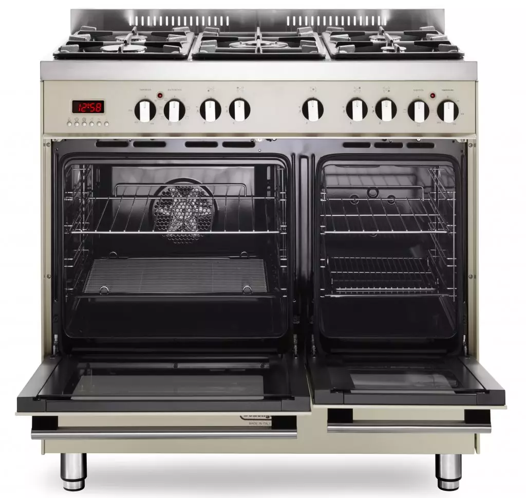 The De’Longhi DTR906-DF/AN exudes Italian sophistication in a distinctive anthracite finish. This 90 cm dual-fuel range cooker offers a five-burner gas hob with a 4 kW wok burner and two large-capacity electric ovens—ideal for families or entertainers who want flexibility without compromise. Its elegant vintage styling, analog timer, and robust cast-iron pan supports combine timeless looks with dependable performance. Offering A-rated energy efficiency and precise temperature control, it’s the perfect blend of classic design and cutting-edge cooking capability.