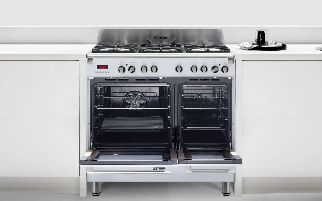 The programmable main oven has eight different functions including grill. The second oven is a conventional oven and also includes a grill.