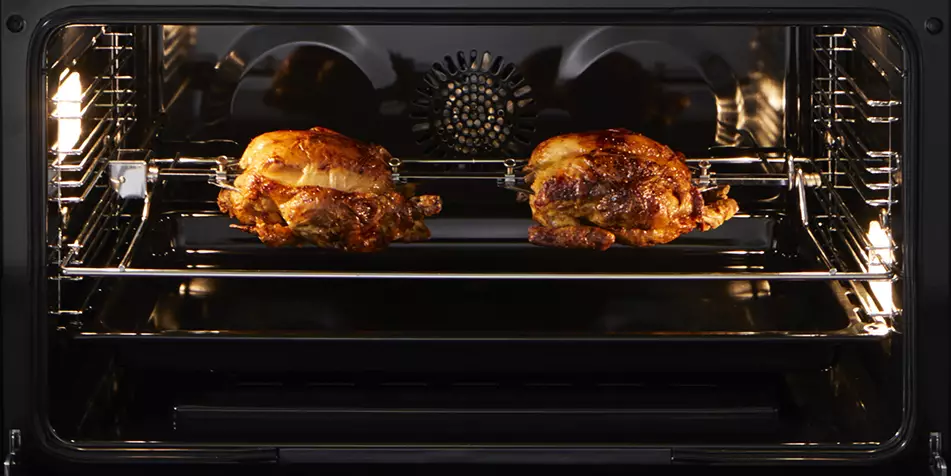 The Grill and Rotisserie combined ensure uniform browning across all surfaces of the food.
