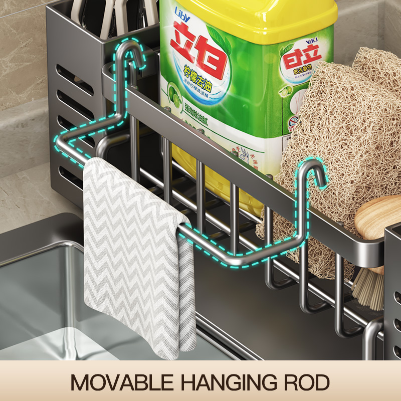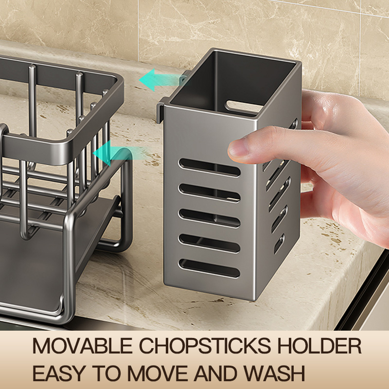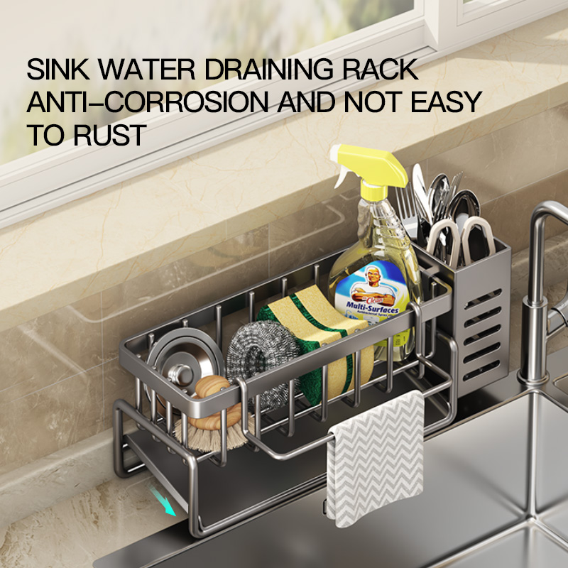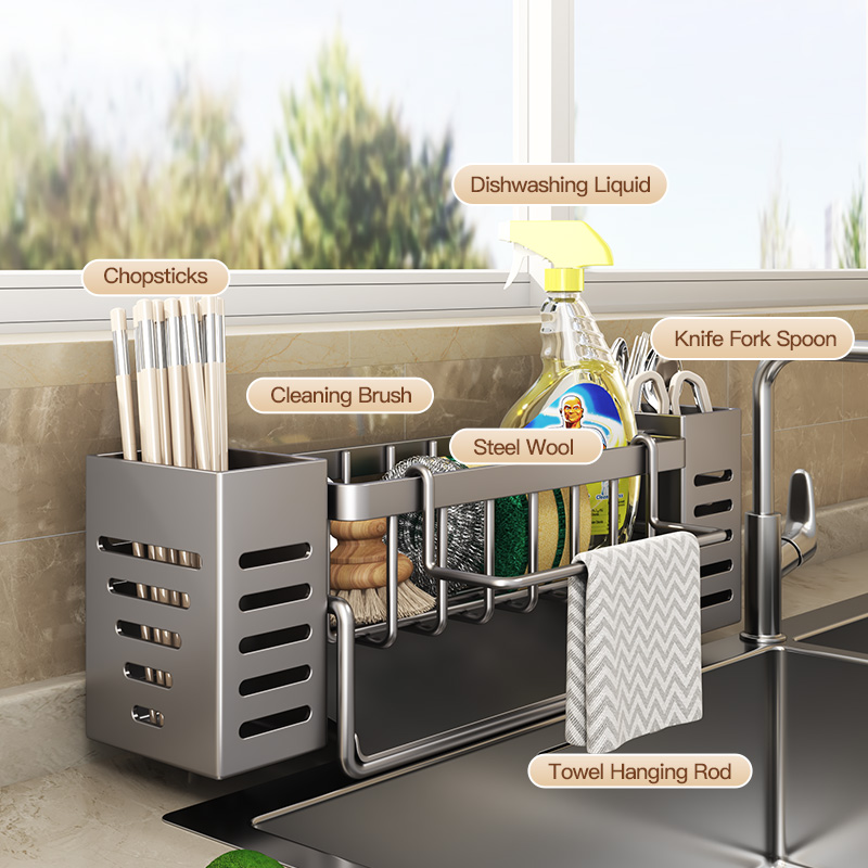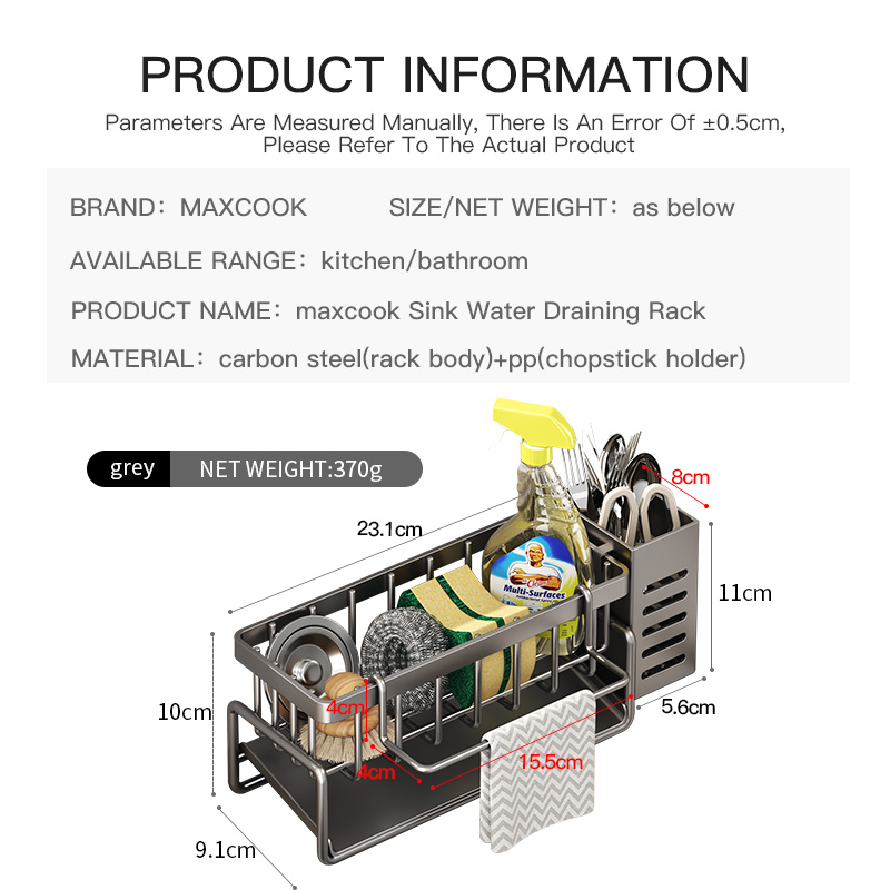 Maxcook Grey Sponge Holder for Kitchen Sink, Sink Organizer with High Brush Holder MCZW5554