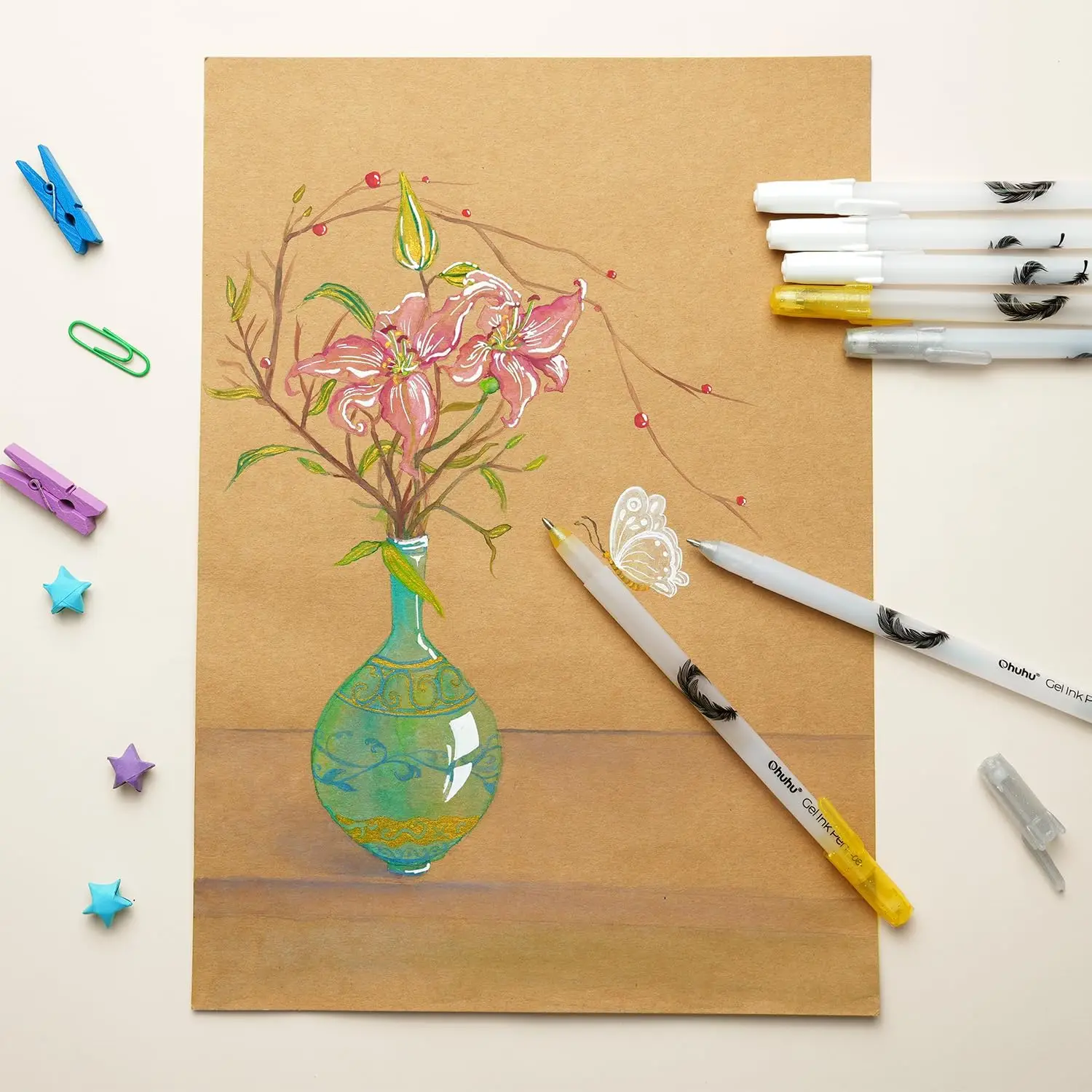 | Number of Pens | 12 (6 White, 3 Gold, 3 Silver) |
