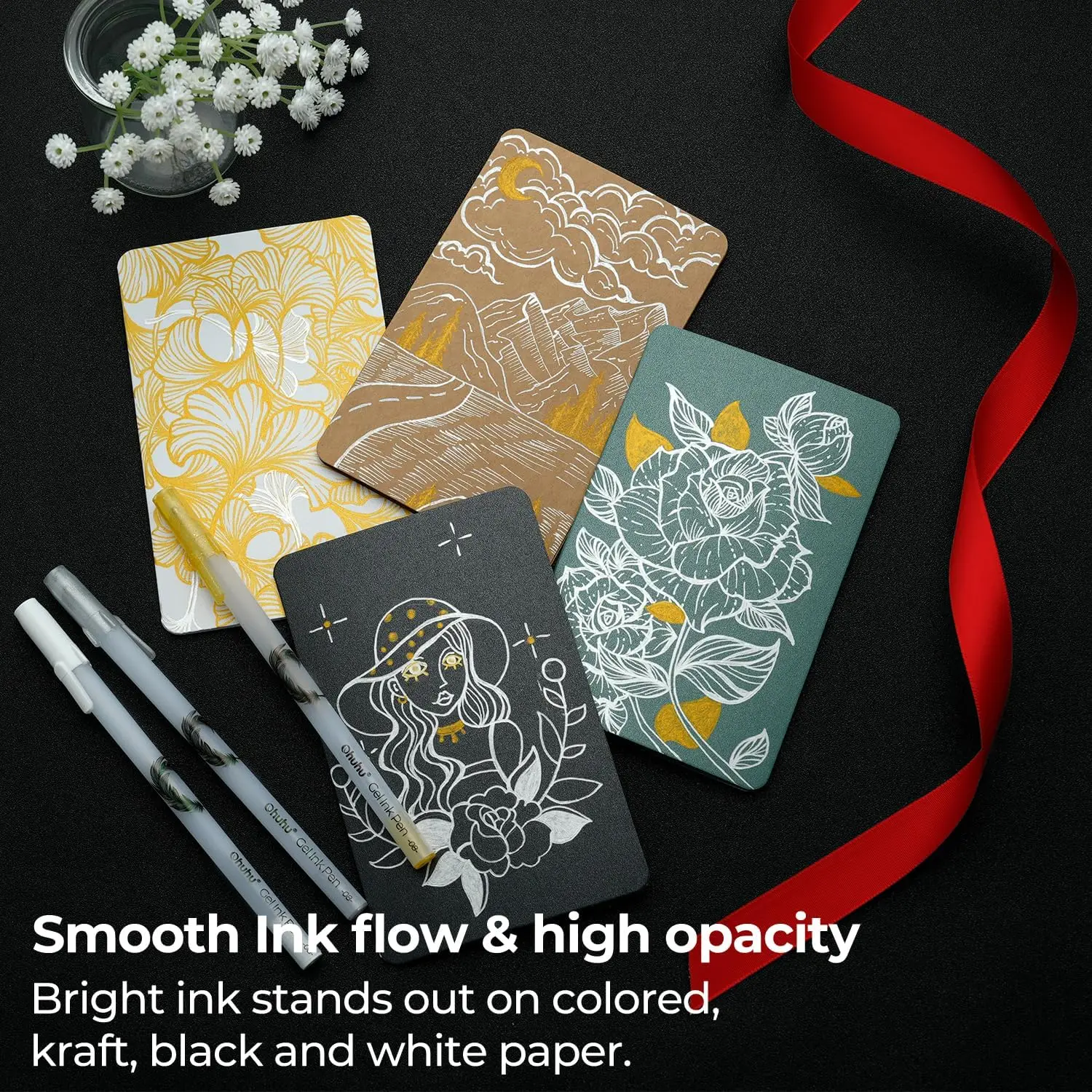 • Includes 12 extra fine point gel pens in 3 metallic colours (6 white, 3 gold, 3 silver), ideal for detailed highlighting, accenting, and sketching on dark surfaces.