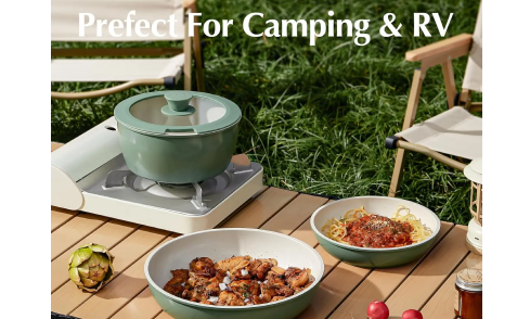 Redchef Gemstone Aluminum II Series 3-Piece Ceramic Frying Pan Set, Green Exterior & Brown Interior