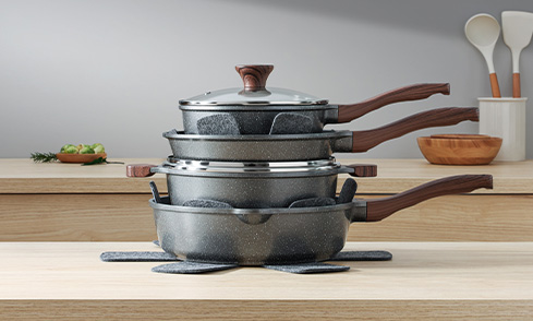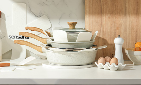 SENSARTE Nonstick Frying Pan Skillets, Swiss Granite Coating Omelette Pans, Healthy Cookware, Free of Intentionally Added PFOA (9.5 Inch Frying Pan and 5QT Saute Pan)